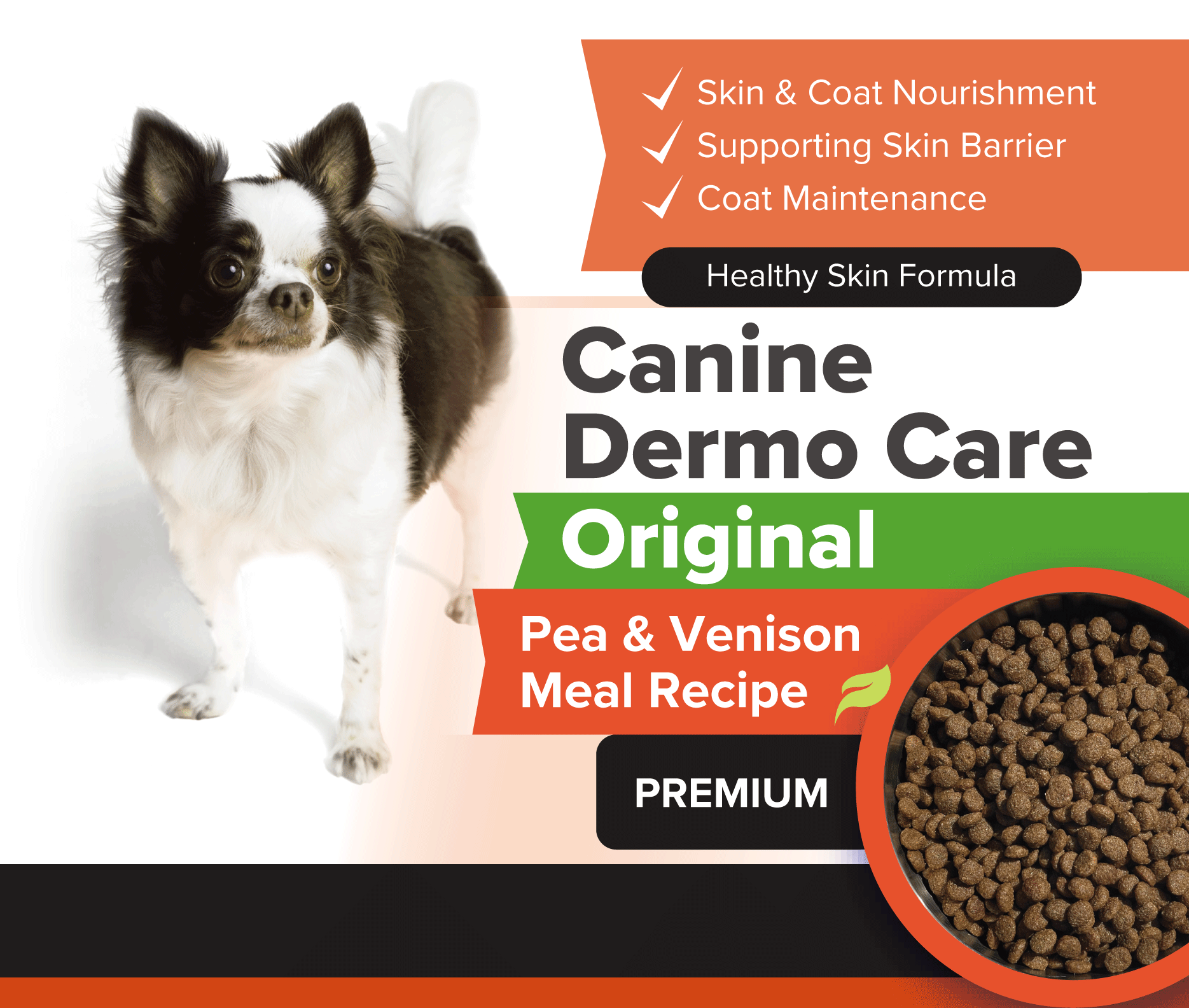 Our Pea & Venison meal formula is a complete dry dog food diet formulated with grain free and single protein ingredients for skin and food sensitive adult dogs, Specially formulated nutrient blends containing high levels of balanced Omega-3 and Omega -6 fatty acids promote healthy skin and shiny coats. The inclusion of soy lecithin and organic zinc, supports the skin barrier, and reduces irritation.